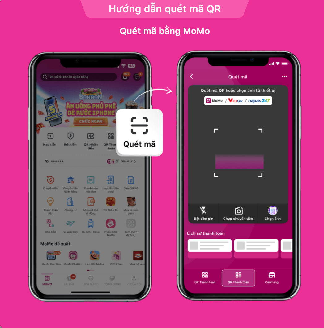 Hướng dẫn thanh toán MoMo bằng Phương Thức Quét Mã QR